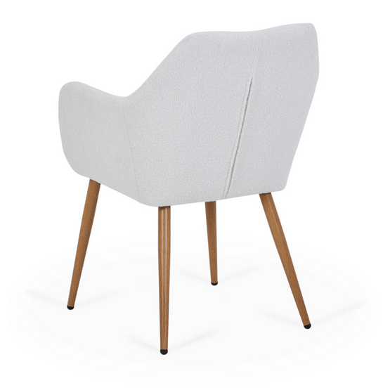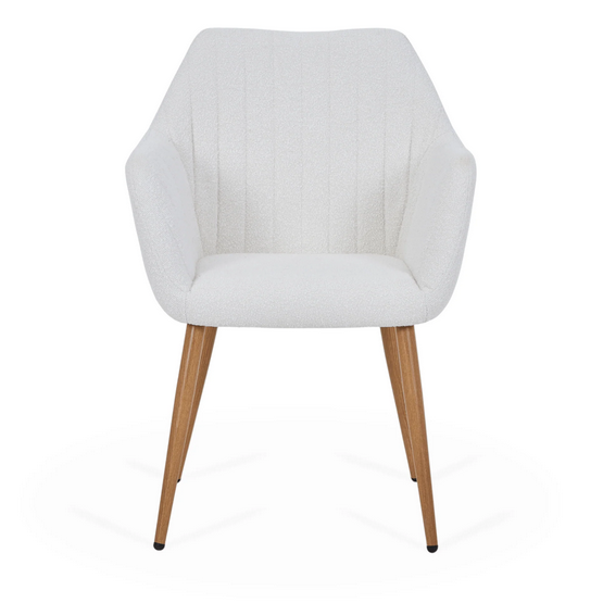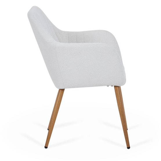 Vanessa est un véritable accroche-regard et s'intègre parfaitement dans la décoration intérieure moderne. La chaise est entièrement rembourrée en boucle avec des coutures verticales dans une belle couleur blanche, avec un cadre au look de chêne. La chaise Vanessa avec des pieds au look de chêne est disponible en boucle blanche, velours gris et tissu beige pour convenir à tous les goûts. L'assise rembourrée offre un bon confort, vous permettant ainsi de passer de nombreuses heures confortables dans la chaise.