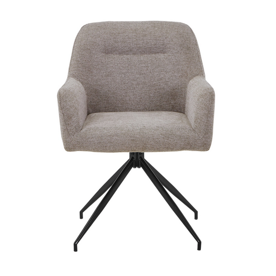 La chaise pivote sur 360 degrés pour une plus grande liberté de mouvement et un aspect pratique au quotidien. Les pieds en métal noir donnent un aspect stable et solide et assurent une bonne durabilité