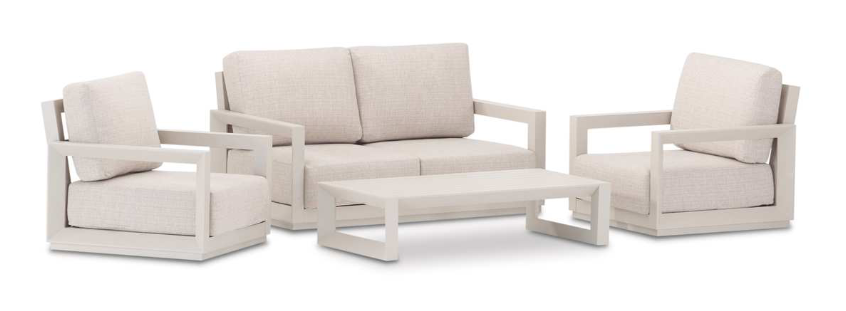 Créez un espace extérieur raffiné avec ce salon de jardin au design contemporain. Sa structure en aluminium coloris moka apporte une touche moderne et élégante, idéale pour une terrasse ou un bord de piscine.